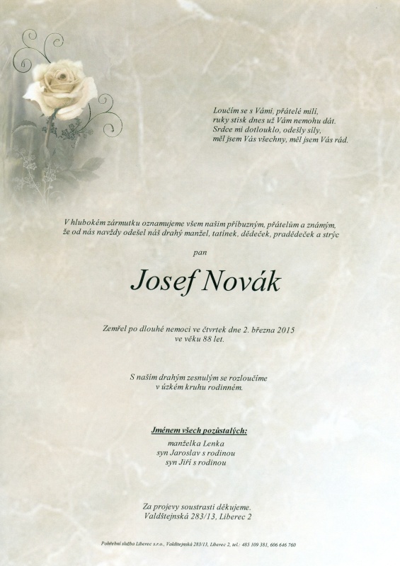 Na výběr máme z několika desítek smutečních veršů. Samozřejmostí je vložení fotografie zesnulé/ho do smutečního oznámení.